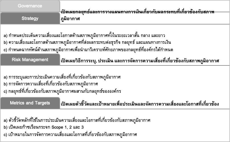 ที่มา: ปรับปรุงจาก TCFD, Final Report Recommendations of the Task Force on Climate-Related Financial Disclosures, (2017).